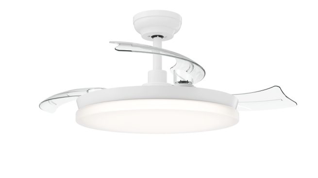 Ventilator de tavan cu lame retractabile, cu lumină LED reglabilă și cu intensitate variabilă