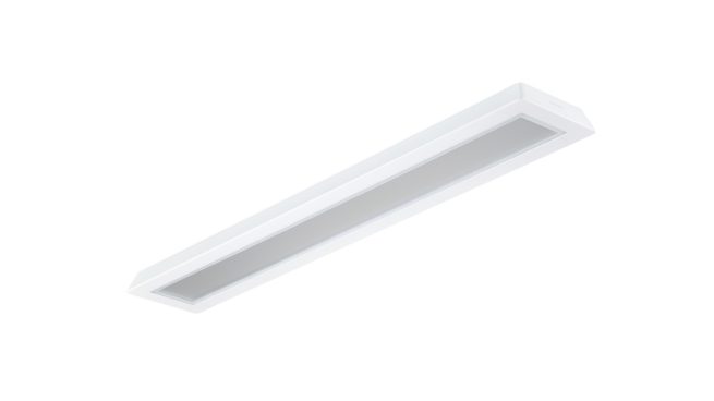 1470x200 mm; H73 mm, Oțel, Alb, Alb semnal (RAL9003), Unitate de alimentare electrică cu interfață DALI, 4500 lm, 46 W, 98 lm/W, 4000 K, (0.43, 0.40) SDCM <3, CRI>90, UGR19, Fascicul luminos larg, Texturat, Polimetil metacrilat, IP20 | Protejat împotriva contactului cu mâna, IK02 | 0,2 J standard, Clasa de siguranță I, Conector push-in cu 5 pini