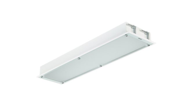 ISO 14644-1 Air cleanness Class 1, 1250x310 mm, Oțel, Alb, Alb trafic (RAL9016), Unitate de alimentare electrică cu interfață DALI, 4000 lm, 41 W, 98 lm/W, 4000 K, (0.39, 0.38) SDCM <3, CRI>90, UGR19, Fascicul luminos larg, Transparent, Sticlă, IP65 | Protejat împotriva pătrunderii prafului, protejat împotriva jeturilor de apă, IK09 | 10 J, Clasa de siguranță I, Conector push-in cu 5 pini